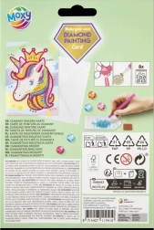 - Različite vrste dijamanata/kamenčića, predložak/slika, aplikacijsko pero, ljepljivi kvadratić, posudica, poklon-kuverta