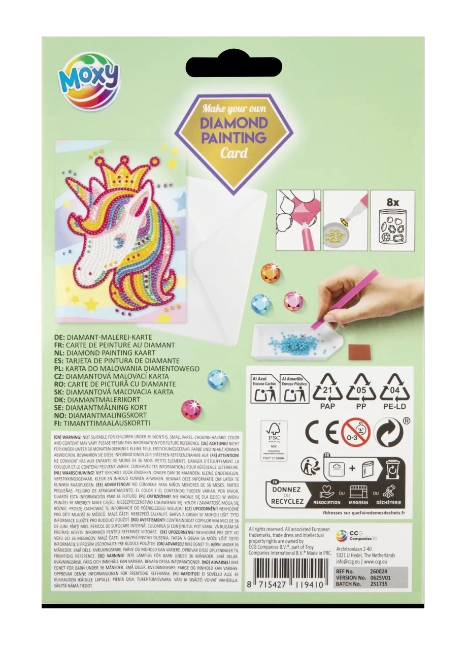 Otkrijte radost stvaranja s ovim kreativnim setom za dijamantno slikanje dimenzija 18 × 13 cm. Lijepite sjajne kamenčiće prema brojevima na predlošku i izradite blještavu sliku koja će razveseliti vas i vaše bližnje. U pakiranju je sve potrebno – od aplikacijskog pera do ljepljivog kvadratića i posudice, plus pokazna/po-klenica za dar za gotovu sliku.