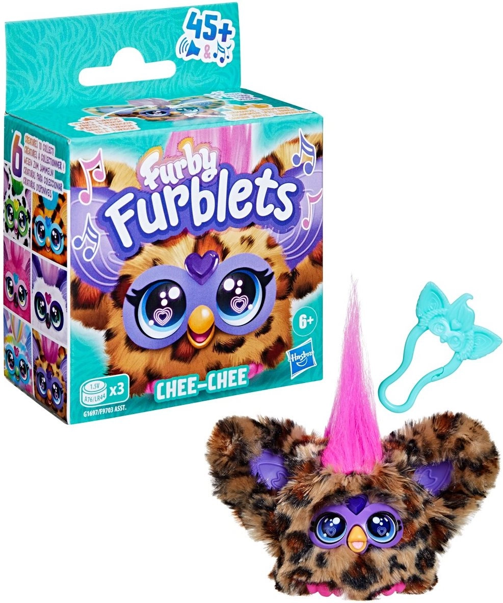 Upoznajte preslatkog prijatelja Furby Furblet Chee-Chee, koji donosi više od 45 zvučnih reakcija, svira veselu glazbu i zna komunicirati na Furbishu. Zahvaljujući odvojivoj kopči lako ga pričvrstite na ruksak ili torbu i uživajte u zabavi bilo gdje.