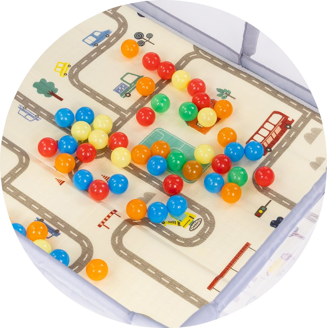Obogatite dječji kutak setom od 50 šarenih igraćih loptica u praktičnoj mrežici. Loptice su lagane, ugodne na dodir i svojom raznolikom paletom boja pozivaju na igru i istraživanje. Odlično odgovaraju za kućne ogradice, igraće šatore ili bazene s lopticama.