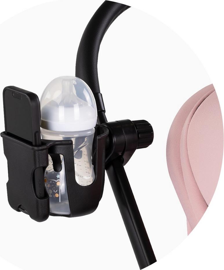Praktičan dodatak za dječja kolica, bicikle i romobile koji spaja držač za napitke i telefon u jednom. Zahvaljujući 360° rotirajućem mehanizmu, jakom protukliznom prihvatu i montaži bez alata sve će vam biti pri ruci sigurno i stabilno čak i na neravnom terenu.