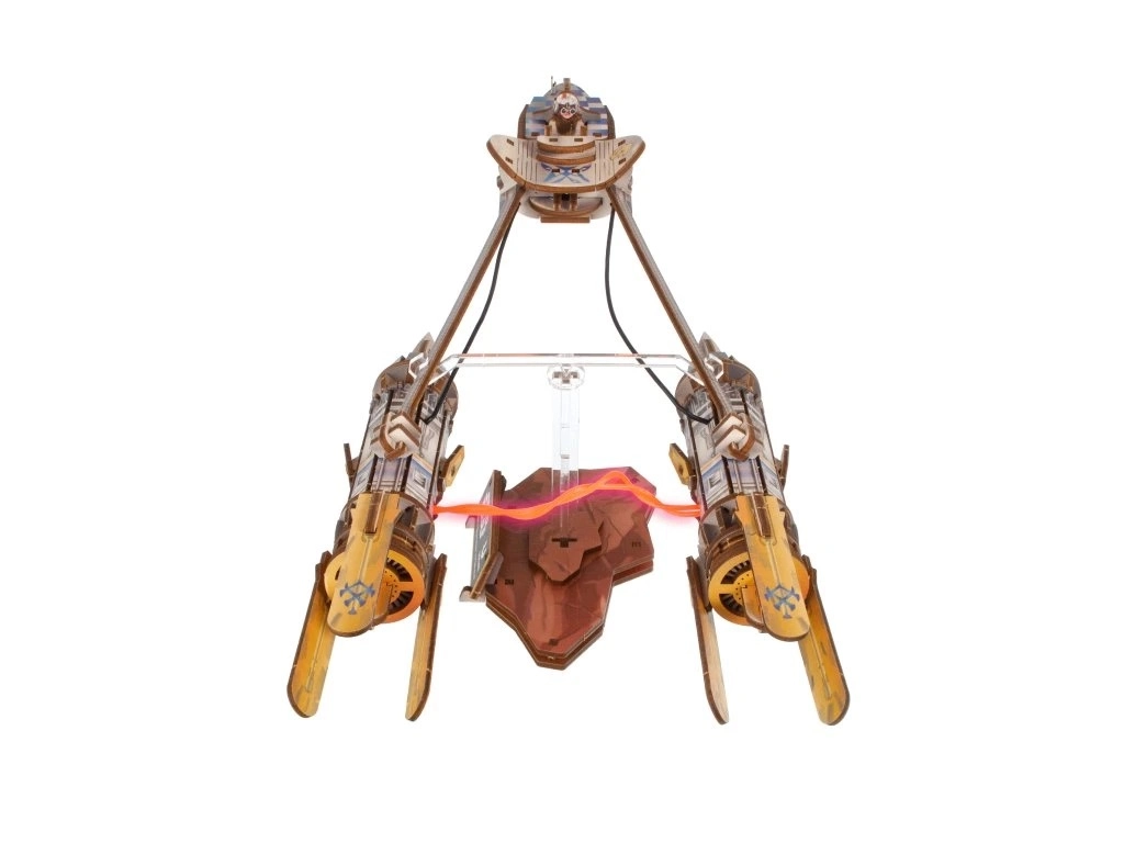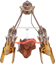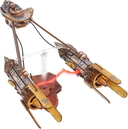 Sastavite ikonični Anakin Skywalkerov trkaći klizač iz svijeta Star Warsa i izložite ga na elegantnom postolju s efektom leta. Model od obojane šperploče nudi LED plazma-luk između motora, otvorivi kokpit s figuricom i bočno njihanje koje simulira let. Sastavljanje se odvija bez ljepila i alata, pa će u njemu uživati i kolekcionari i ljubitelji maketa.