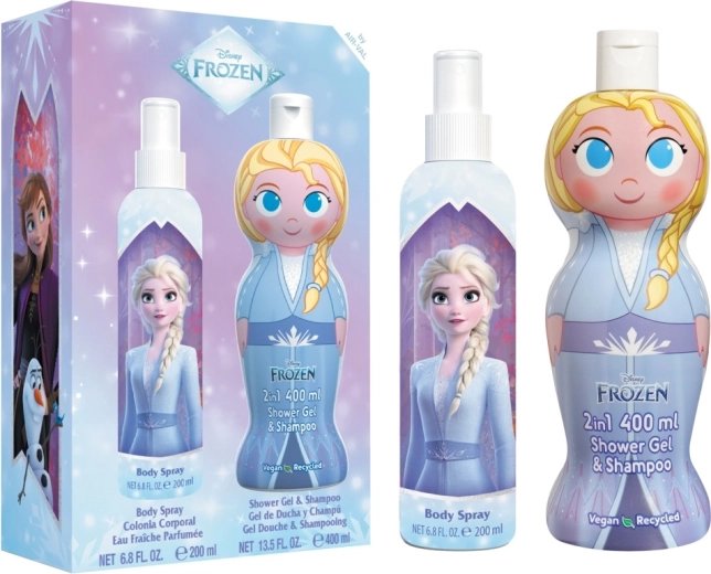 Razmazite male i velike obožavatelje FROZEN-a čarobnom njegom tijela. Ovaj poklon set sadrži svježi sprej za tijelo 200 ml i gel za tuširanje i šampon 2u1 400 ml za brzu i zabavnu svakodnevnu higijenu s nježnim mirisom i blagom formulom.