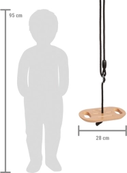 Ovaj stilski ljuljački disk u kombinaciji prirodnog drva i crnog užeta izvrstan je dodatak za unutarnja i vanjska igrališta. Može se koristiti sjedeći i stojeći – ergonomske rupe za ruke i protuklizni utori na sjedištu pružaju sigurnost i udobnost pri svakom ljuljanju.