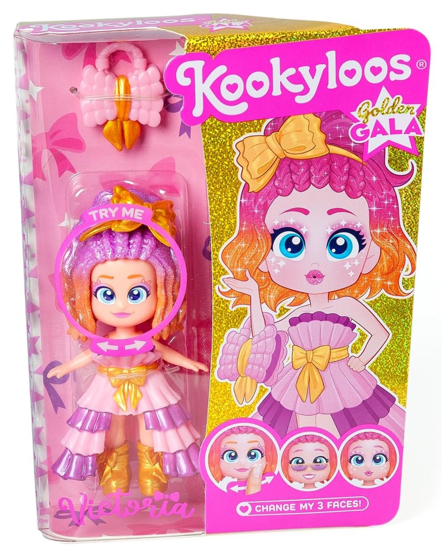 Figurica KookyLoos Victoria Golden Gala spaja modni stil, izražajnu osobnost i precizno izrađene detalje. Okretanjem glavice lako mijenjate 3 različite mimike, što proširuje mogućnosti igre, pripovijedanja priča i izlaganja u kolekciji.