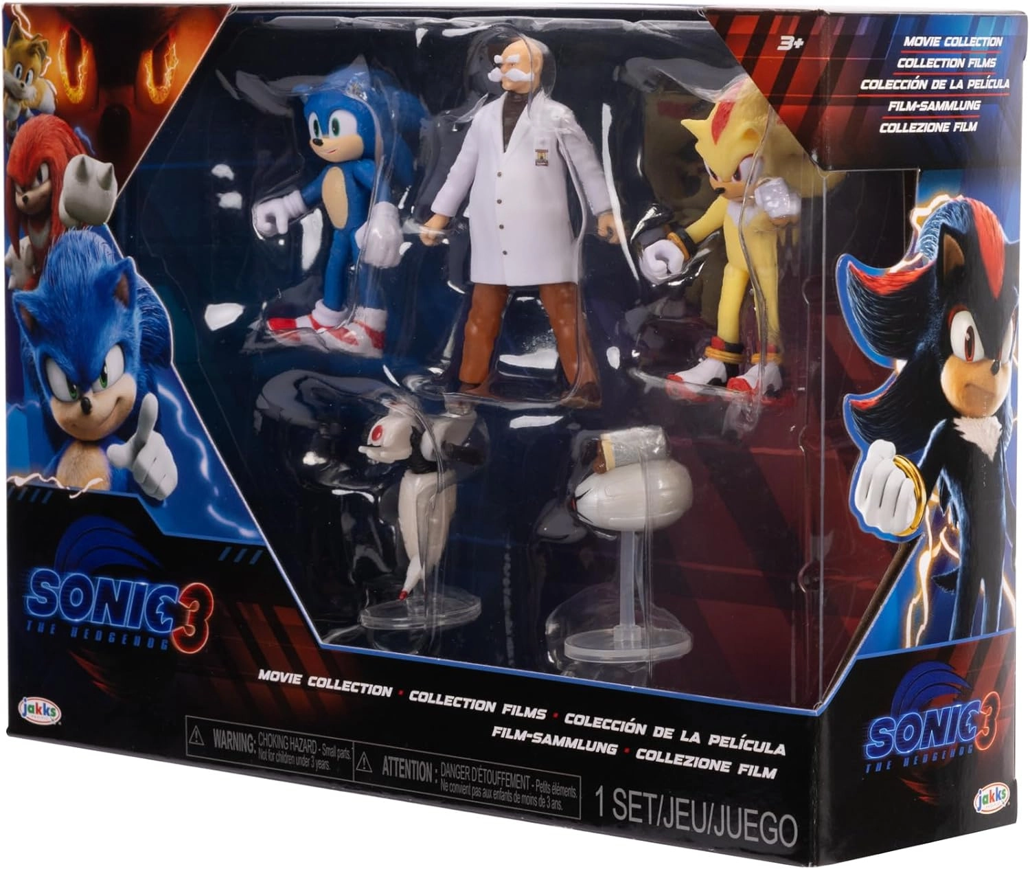 Ovaj stilski multipack prenosi napetost i humor filma SONIC THE HEDGEHOG 3 izravno u vašu sobu. Set sadrži plavog Sonica, žutog Super Sonica, znanstvenika dr. Robotnika i dva akcijska dodatna uređaja – Buzz Bomber i dron na stalku za stabilno izlaganje.