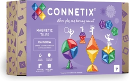 Otkrijte radost slobodne gradnje s prozirnim magnetskim dijelovima CONNETIX u duginim bojama. Dijelovi se čvrsto spajaju sa svih strana, pa djeca lako stvaraju 2D mozaike i 3D konstrukcije te pritom prirodno usvajaju geometriju, fiziku i prostornu predodžbu. Bez BPA i ftalata, s sigurnim zaobljenim rubovima za bezbrižnu igru.