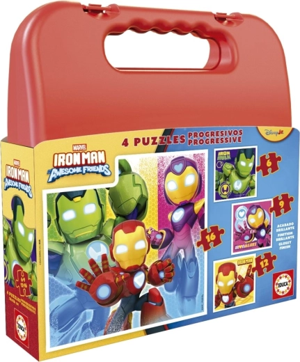Ovaj set progresivnih slagalica idealan je za djecu koja uče slagati i žele se postupno usavršavati. Četiri slike s junakom IRON MAN imaju različit broj dijelova, tako da svatko može pronaći svoj izazov i užitak u slaganju. Zahvaljujući manjoj veličini dijelova kod zahtjevnijih slika, djeca se prirodno pomiču naprijed.
