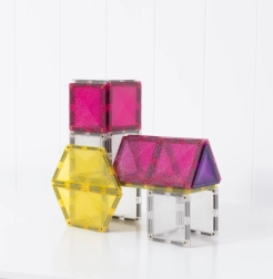 Svjetlucave prozirne pločice CONNETIX u pastelnim bojama zasigurno će postati favorit svakog malog graditelja. Dijelovi se zahvaljujući jakim magnetima pouzdano spajaju sa svih strana, pa je lako graditi 2D i 3D modele – od jednorog dekoracija preko mostova do tornjeva i dvoraca. Svako spajanje prati zadovoljavajući „klik“ koji potiče koncentraciju i radost slaganja.