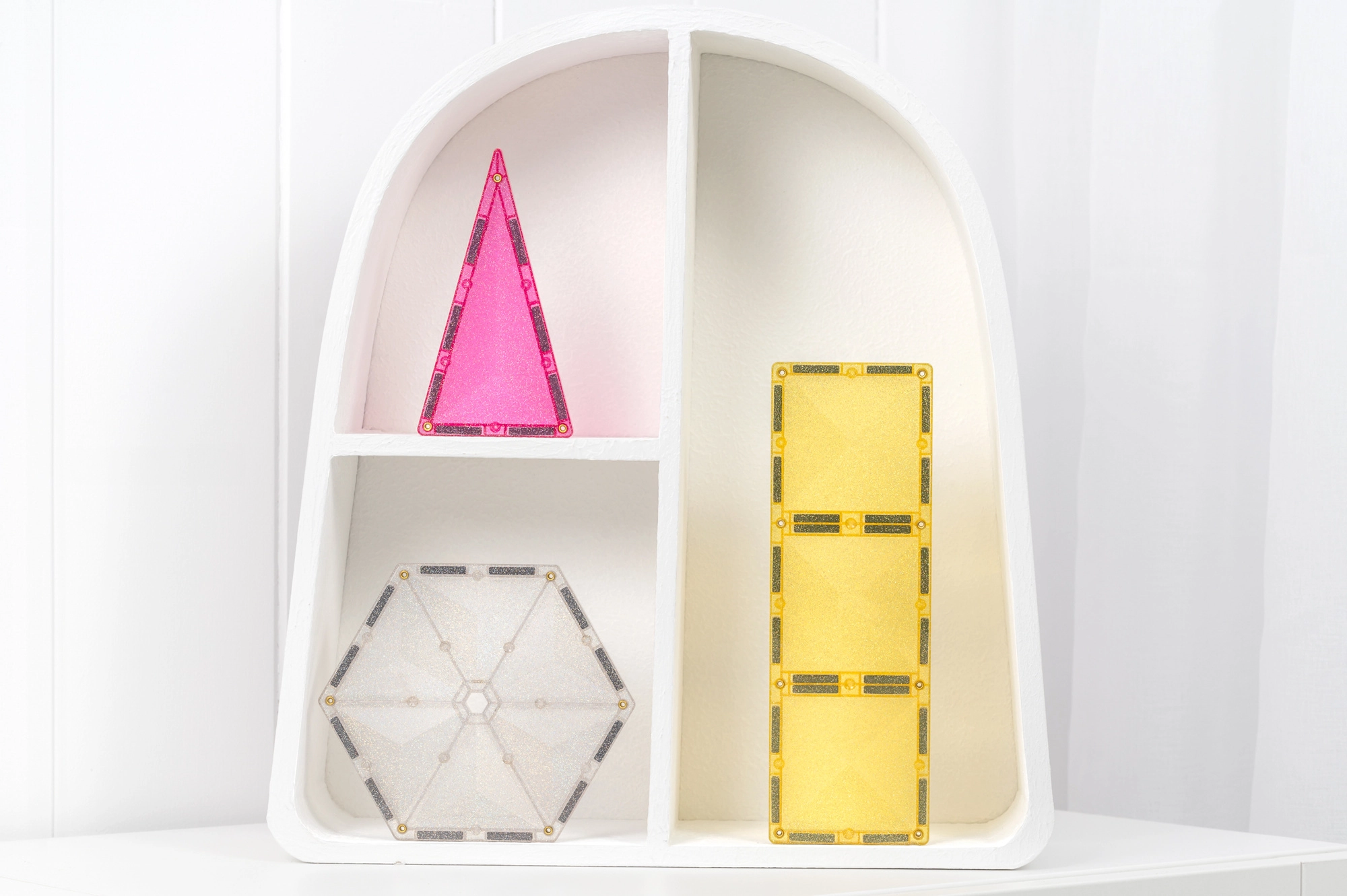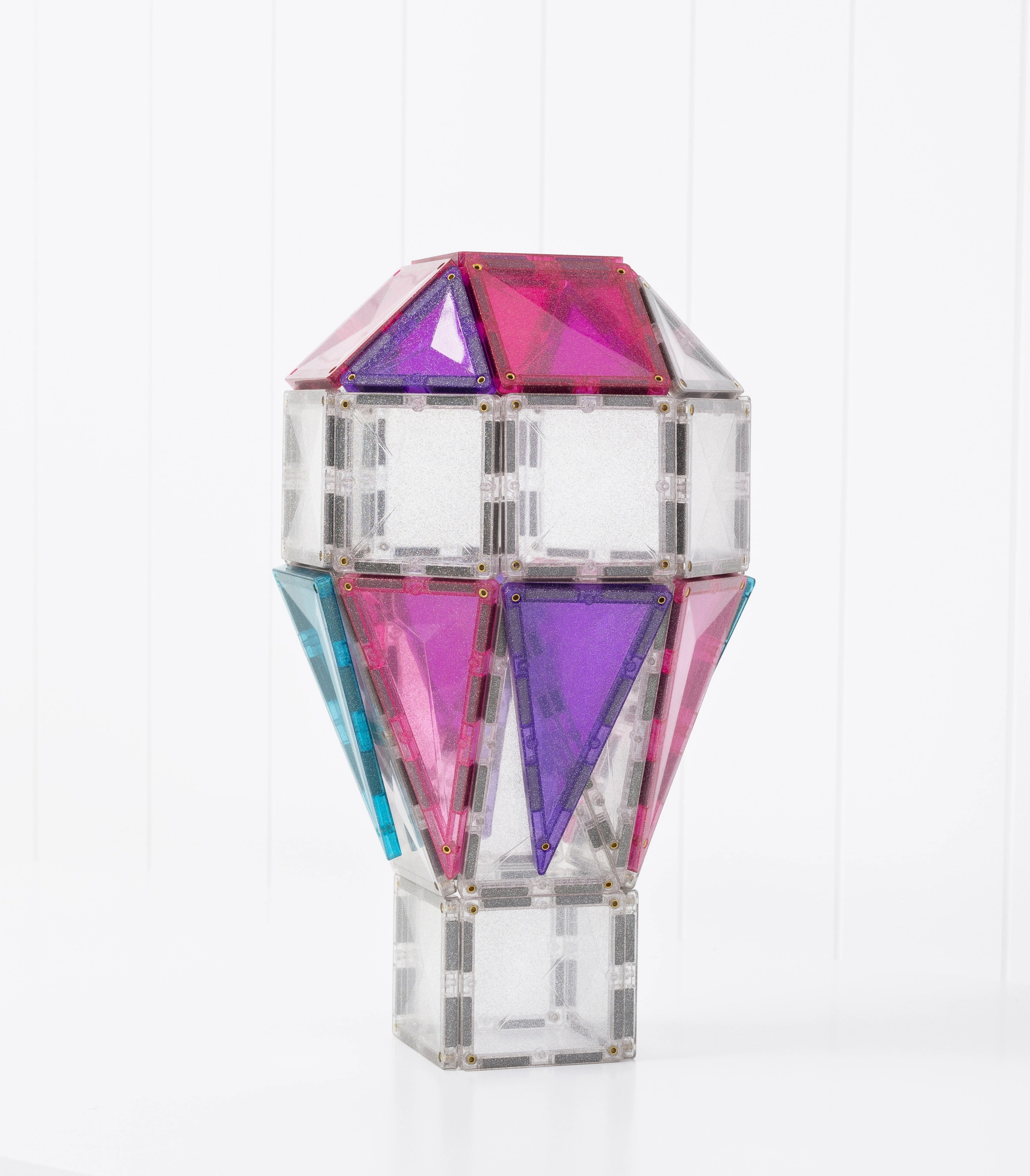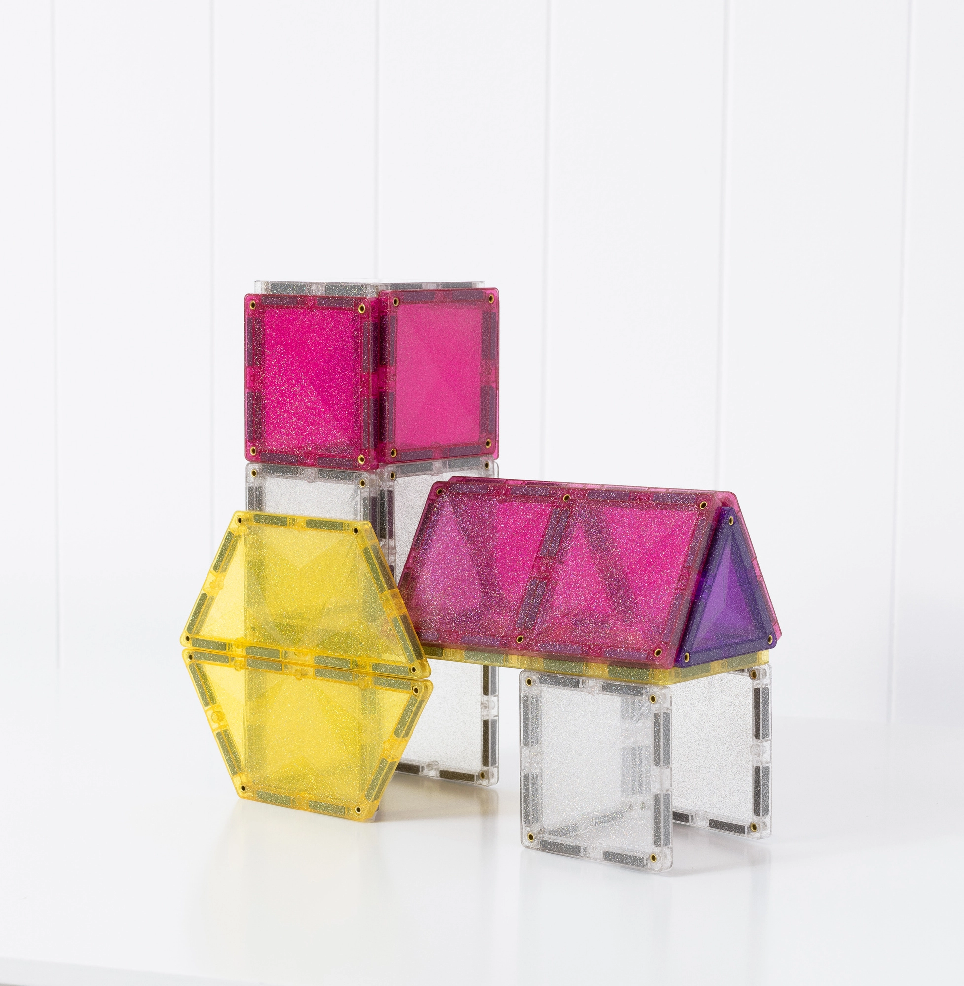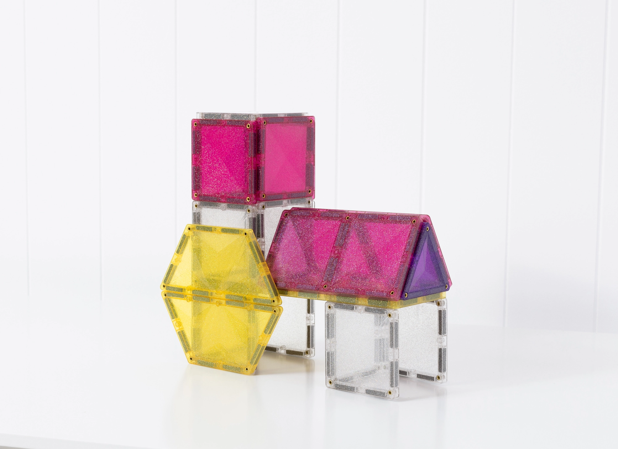 Glitter izvedba obasjat će svaku građevinu. Prozirni paneli prekrasno lome svjetlo i potiču djecu na stvaranje originalnih jednorog motiva i razrađenih 3D konstrukcija.