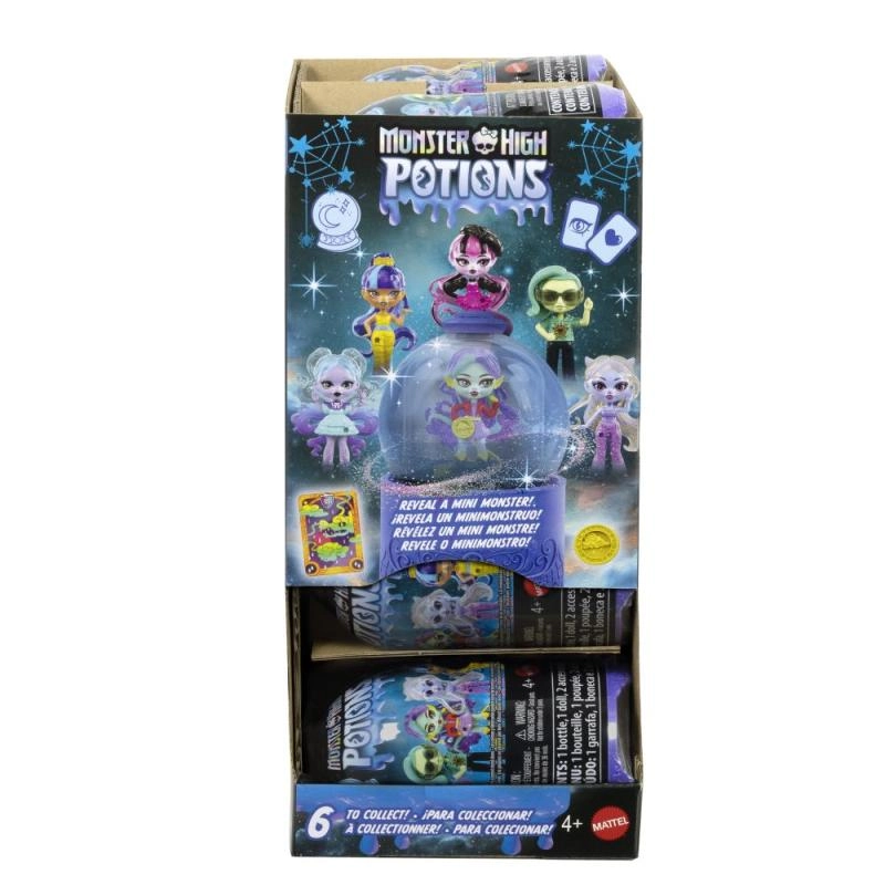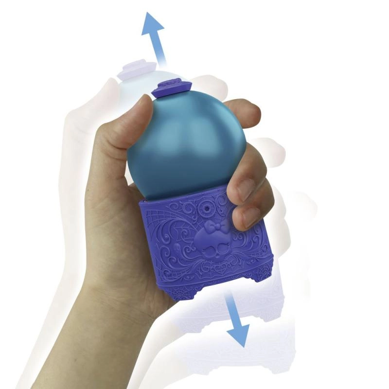 Ovaj razigrani set donosi jedinstveno iskustvo raspakiravanja: pripremite napitak u tri koraka – ulijte vodu u kuglu, protresite i promatrajte kako se stvara čarobni napitak. Zatim okrenite kuglu i pojavljuje se mala lutkica iz vašeg omiljenog MONSTER HIGH svijeta. Zahvaljujući kompaktnoj veličini, idealna je za igru kod kuće i na putu.