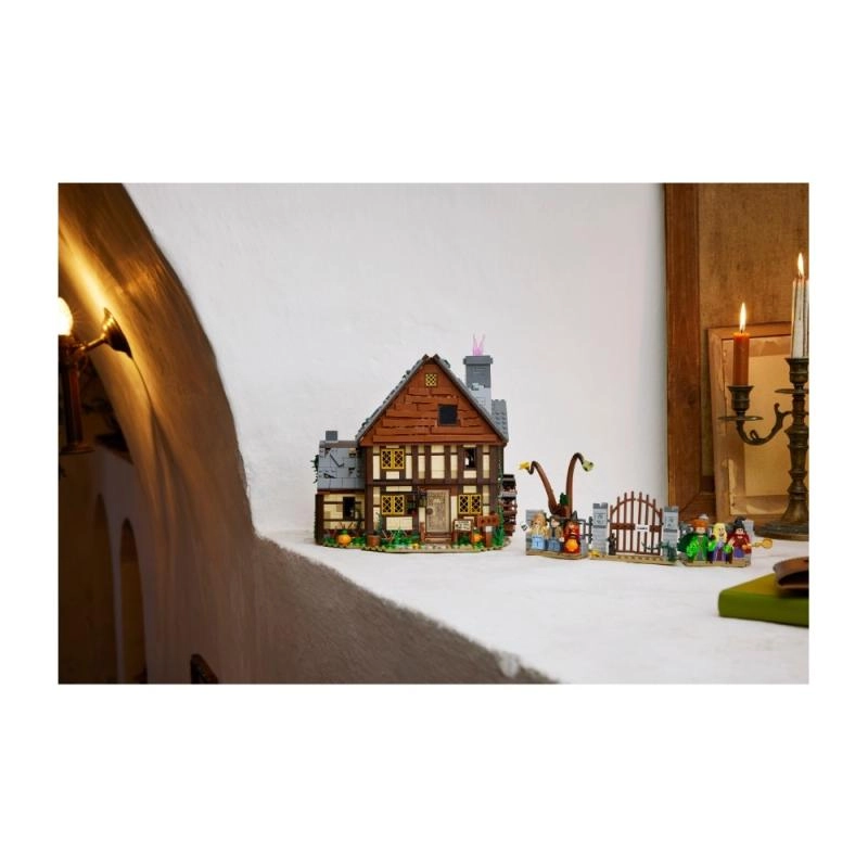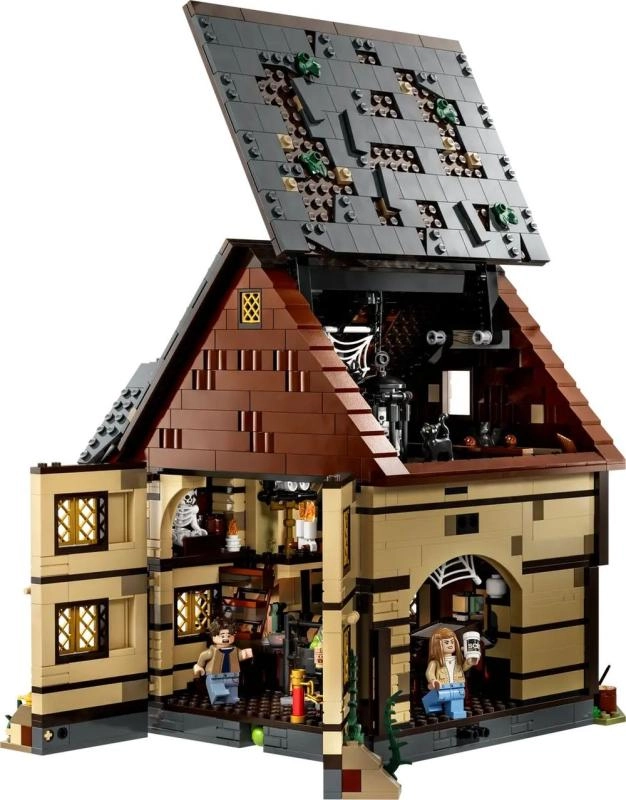 Otkrijte kultnu kolibu iz filma Disney Hokus pokus u obliku visokodetaljnog seta za obožavatelje i kolekcionare. Model se otvara na više načina za lak pristup unutrašnjosti: vidjet ćete muzejski dućan, sobu vještica punu šišmiša i kotao sa LEGO svjetlosnom kockom koja osvjetljava plamen odozdo. Ne nedostaju Knjiga čarolija, bočna prostorija za zatočenje Dani i funkcionalni vodeni kotač s dimnjakom iz kojeg pri okretanju „izlazi” ružičasti dim.