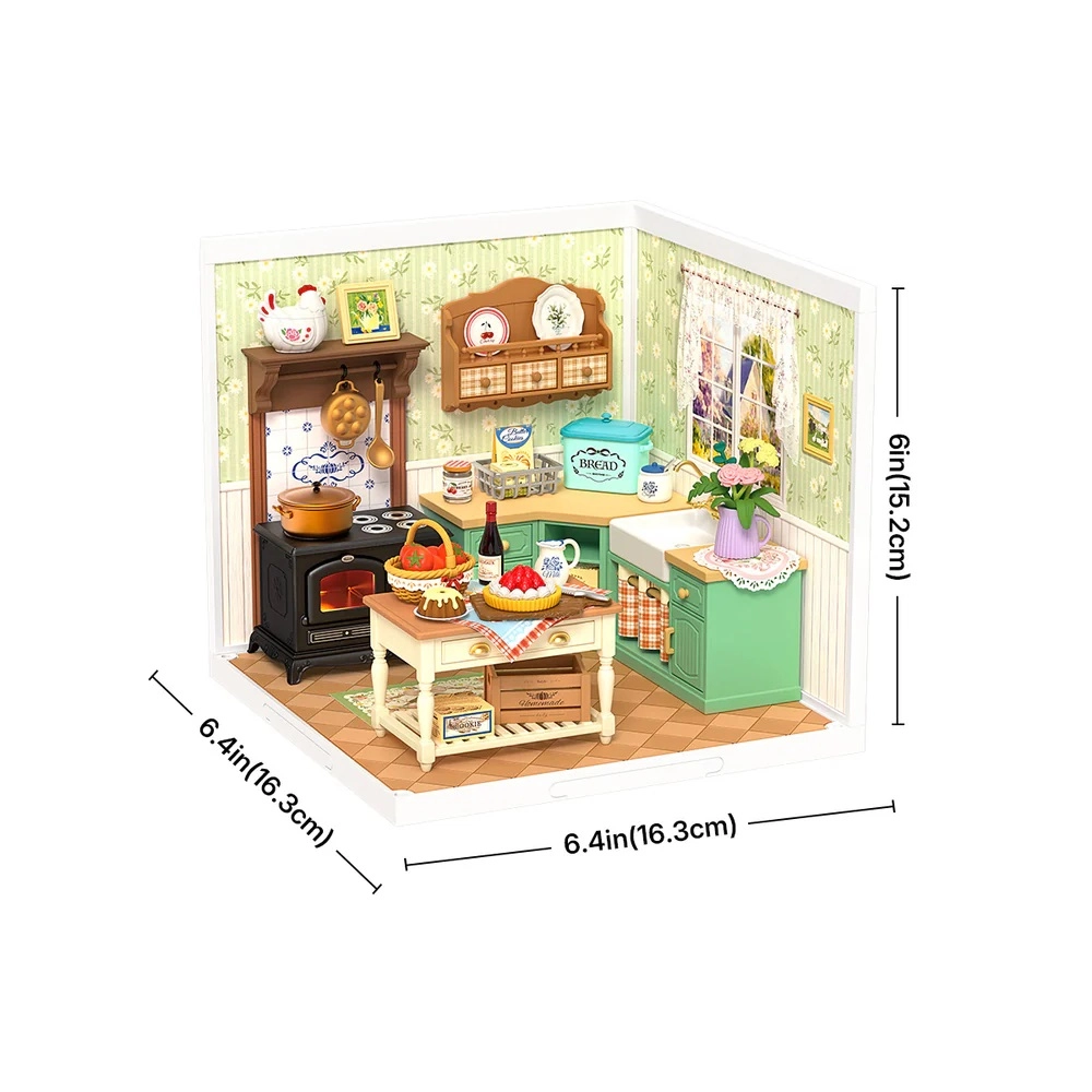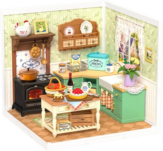 Otkrijte svijet detalja i ugode u minijaturi. Ovaj precizni DIY set vodi vas kroz izradu seoske kuhinje sa štednjakom, sudoperom, otokom i mnoštvom realističnih dodataka. Zahvaljujući LED osvjetljenju istaknut će se svaki komad namještaja i dekoracije, a gotov model postat će dojmljiv ukras police ili radnog kutka.