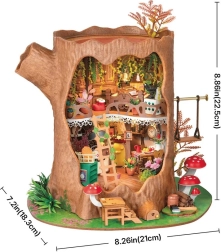 Uđite u svijet mašte i stvorite vlastitu Šumsku kućicu iz panja – dvoetažnu mini kućicu s drvenim namještajem, kuhinjom, spavaćom sobom, dekoracijama, vrtićem gljiva i vanjskom ljuljačkom. Nakon uključivanja LED svjetala model se pretvara u očaravajuću izložbu i postaje središte svake police.