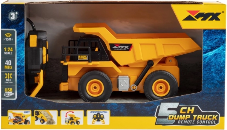 Realistični RC kiperski kamion u mjerilu 1:24 oduševljava detaljnom izradom i potpuno funkcionalnom kiperskom korbom. Upravljanje na frekvenciji 40 MHz, domet 10–15 m, 5-kanalni upravljač, svjetlosni efekti i punjiva baterija 3,7 V osiguravaju zabavnu i glatku vožnju brzinom 2–3 km/h.
