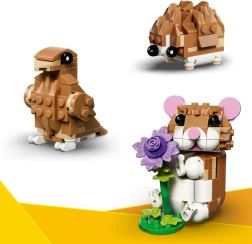 Ovaj kreativni set donosi glavni model hrčka s pokretnom glavom i prednjim šapicama, koji drži šarmantni ljubičasti cvijet. Preradite ga u slatkog ježa s malim cvjetićem ili u pticu uz gnijezdo s jajem – jedan set, tri doživljaja.