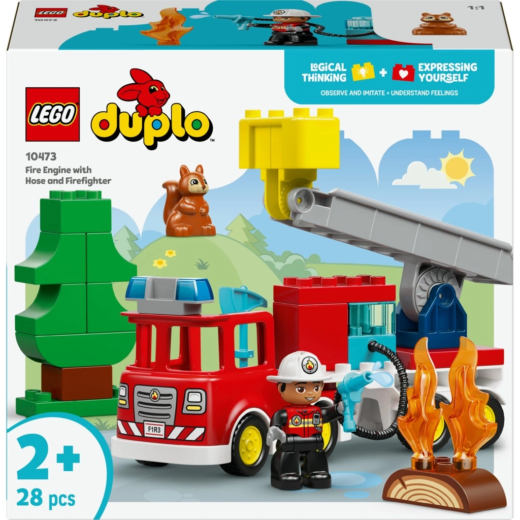 Vatrogasno vozilo LEGO DUPLO nudi djeci lako držive dijelove, izrazite boje i puno realističnih detalja – od prozirnog spremnika za vodu do zglobne prikolice za lako manevriranje. Podesive ljestve s košarom omogućuju malim vatrogascima sigurno “spašavanje” simpatične vjeverice sa stabla.