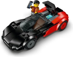 Stilski LEGO City električni superautomobil za djecu od 5 godina donosi moderan izgled i zabavnu igru. Sastavi od 109 dijelova elegantan sportski automobil s aerodinamičkim dizajnom, niskoprofilnim gumama, zatamnjenim kokpitom i otvarajućim stražnjim dijelom s baterijom. U kompletu je minifigura vozača sa pametnim telefonom i podrška za aplikaciju LEGO Builder s interaktivnim 3D uputama.