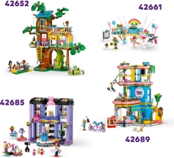 LEGO Friends zabavno unutarnje igralište osmišljeno je za razigranu djecu koja žele otkrivati, stvarati i graditi vlastite priče. Tri povezane zone s atrakcijama donose raznolike izazove – od narančaste penjačke mreže preko plavog tobogana u bazen s raznobojnim lopticama pa sve do trampoline, vrtuljka i preslatkog skakutavog zeca. Tu su i realistični dodaci poput buffeta s hot dogovima i ledenom kašom, plesnog automata, automata za žvakaće gume i blagajne.