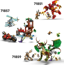 Dio seta je i opružni izbacivač za dvije strijele koje se mogu odvojiti i premjestiti na bočni dio sa „zelenilom“ za taktičkije igranje. U kokpitu se udobno smještaju dvije minifigure. U pakiranju je ukupno pet likova – Jay, Nya, Kai u zmajevu obliku, zemaljsko čudovište i vođa lojalista – za raznolike priče iz svemira NINJAGO.