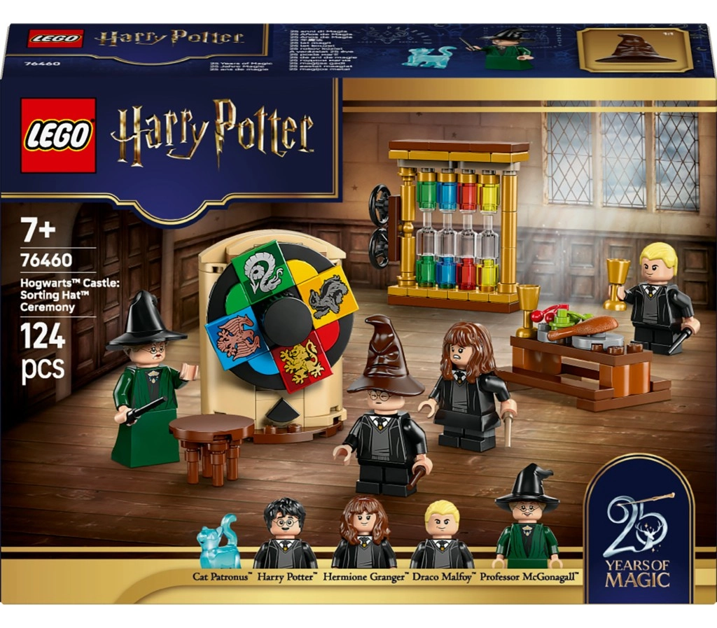 Proživite ikonični trenutak iz filma Kamen mudraca s ovim setom LEGO Harry Potter. Set sa 124 dijela donosi Veliku dvoranu s okruglim stolićem, blagovaonskim stolom i funkcionalnim Razredbenim šeširom s mehanizmom za okretanje koji odlučuje o domu. U kompletu su i 4 detaljne minifigure – HARRY POTTER, HERMIONE GRANGER, DRACO MALFOY i profesorica MCGONAGALL – te jedinstveni patronus u obliku prozirne plave mačke. Odlično se kombinira s drugim LEGO Harry Potter setovima, posebno s Velikom dvoranom (76435).