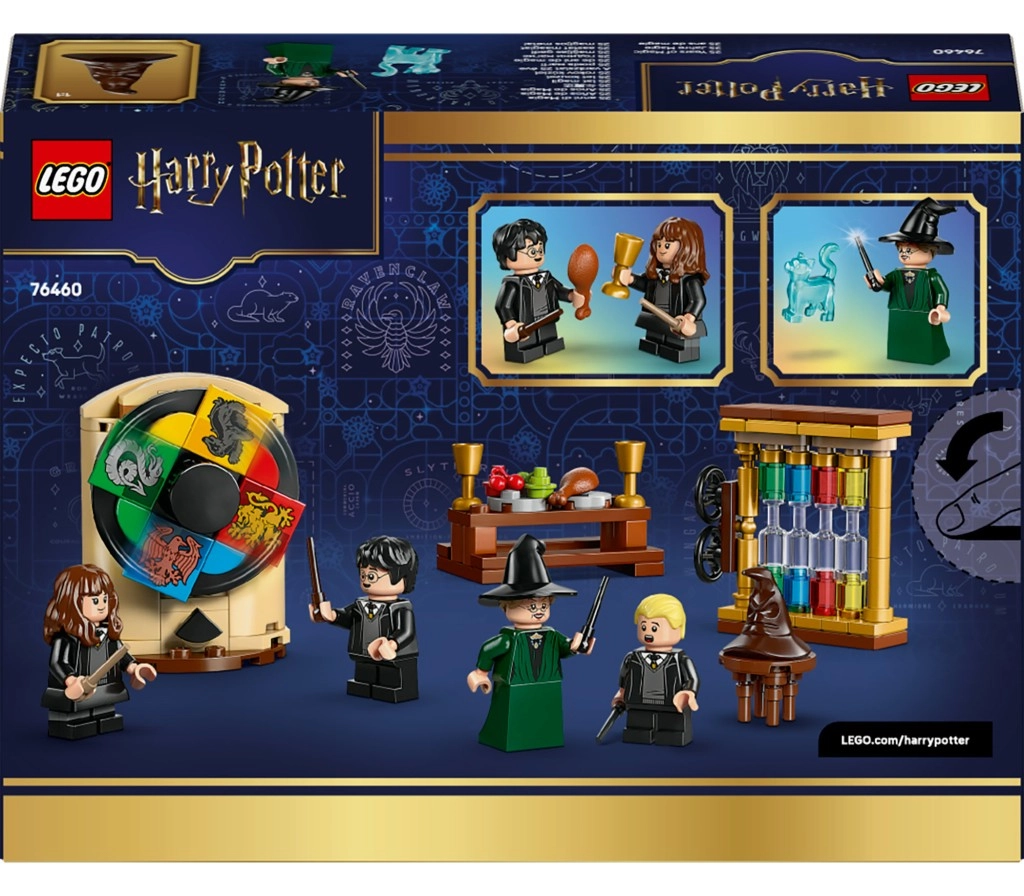Uronite u atmosferu Hogwartsa i doživite ceremoniju razvrstavanja baš kao u filmu. Okrenite mehanizam Razredbenog šešira, stavite ga minifiguri i otkrijte u koji će dom učenik pripasti. Autentični detalji Velike dvorane, uključujući blagovaonski stol s gozbom i brojač kućnih bodova, potiču kreativnu igru i pripovijedanje vlastitih čarobnih priča.