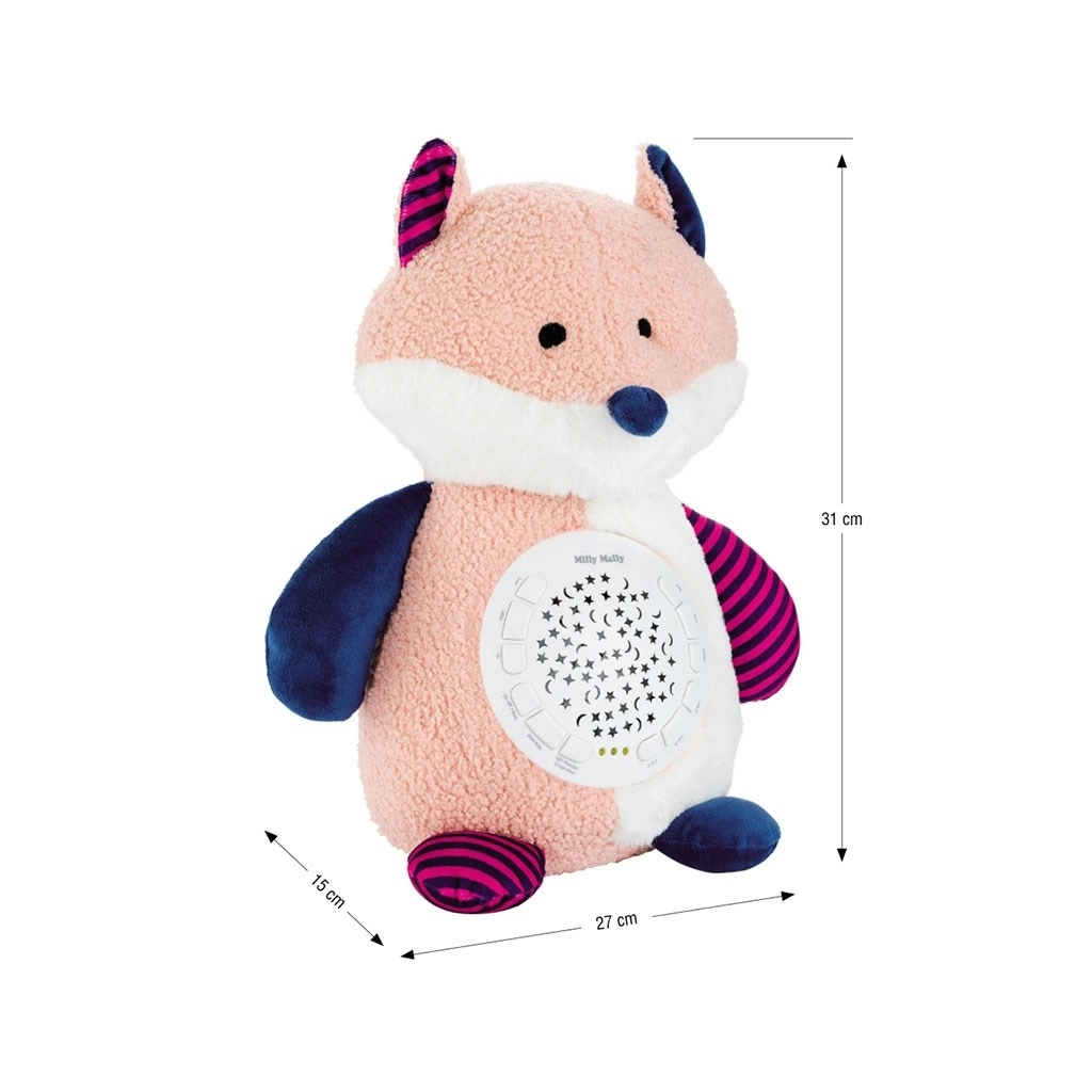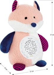 Ova meka plišana lisica spaja umirujuću igračku i pametni projektor zvijezda. Nakon uključivanja projicira noćno nebo u raznim bojama i reproducira uspavanke i bijeli šum koji stvaraju osjećaj sigurnosti i potiču brže uspavljivanje.