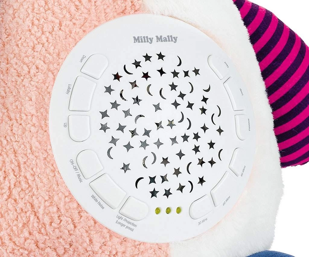 Mekani pliš s vezenim detaljima ugodan je na dodir i siguran za najmlađe. Odvojivi projektor olakšava održavanje igračke.