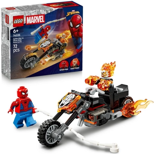 Ovaj akcijski set donosi djeci mnoštvo načina za uživanje u herojskim obračunima. Ikonični Ghost Riderov motor ima 2 goruća ispuha i 2 ugrađena pucača, dok SPIDER‑MAN uz pomoć paukovog užeta može zaustaviti motor ili se voziti na njemu. Zahvaljujući kotačima za vožnju i detaljnim minifiguricama, igra je puna dinamike i mašte.