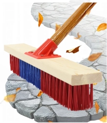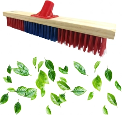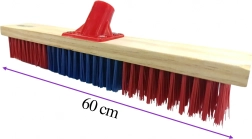 Robusna metla širine 60 cm osmišljena je za intenzivno čišćenje velikih površina. Guste i tvrde sintetičke (PVC) čekinje učinkovito skupljaju lišće, prašinu i grublje nečistoće te se dobro snalaze i na mokroj podlozi. Drveni blok s plastičnim adapterom i navojem 22 mm drži dršku čvrsto na mjestu i osigurava dug vijek trajanja.
