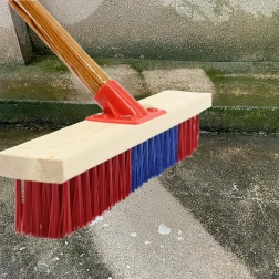 Snažna ulična metla širine 60 cm s čvrstim PVC čekinjama za brzo i učinkovito čišćenje na pločnicima, parkiralištima, u halama i skladištima. Izdrživa drvena glava s plastičnim držačem i navojem 22 mm osigurava stabilno i lako pričvršćivanje drške. Idealna za zahtjevno čišćenje vanjskih i industrijskih površina.