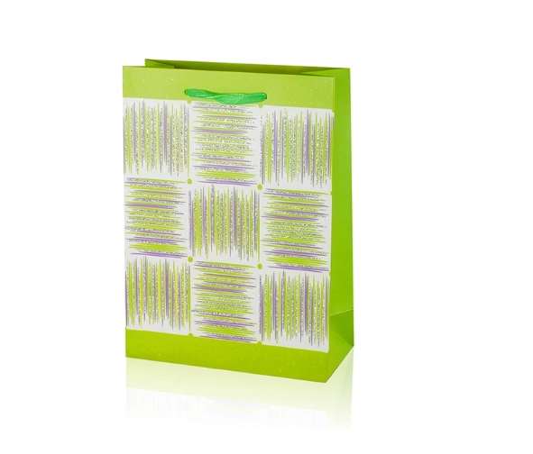Udobno nošenje osiguravaju vrpčane ručke, a sjajni laminat daje premium izgled i zaštitu od ogrebotina.