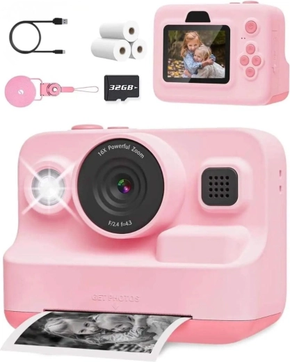 Dječji instant fotoaparat s pisačem, videozapisima i igrama, ružičasti