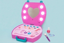 Sadrži kozmetičku torbicu sa svjetlom i ogledalom, 12 različito obojenih sjenila za oči, 3 kista za sjenilo, 2 rumenila, kist za rumenilo, 3 različito obojena laka za nokte, sjajilo za usne, balzam za usne, turpiju za nokte i upute. Prikladno za djecu od 8 godina.