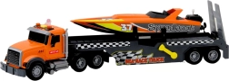 Ovaj atraktivan set prenosi djecu u svijet vodenih utrka i specijalnog prijevoza. Veliki kamion s niskopodnom prikolicom prevozi sportski speedboat koji se nakon navijanja može koristiti i u kadi ili bazenu. Kombinacija svjetlosnih i zvučnih efekata te detaljnih otisaka stvara autentičan doživljaj igre.
