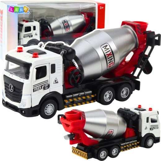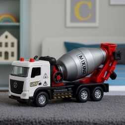 Realistična dječja mješalica za beton s metalnom kabinom, rotirajućim miješajućim bubnjem i svjetlosnim i zvučnim efektima donosi puno kreativne zabave. Zahvaljujući vratima koja se otvaraju, čvrstim kotačima i kvalitetnoj izradi spremna je za akcijske gradilišne scene odmah po raspakiravanju – baterije AG13 su uključene u pakiranje.