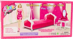 Stilski set namještaja za spavaću sobu za fashion lutke visine oko 29 cm. Sadrži krevet, toaletni stolić sa zrcalom i stolac. Izdržljiva plastična izrada, ružičasto-bijeli dizajn i sigurno zaobljeni oblici potiču kreativnu igru i razvoj fine motorike.