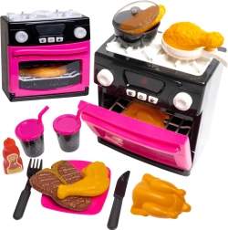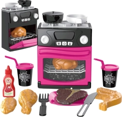 U kompletu je sve što mali kuhari trebaju: lonci i tave, pribor za jelo, namirnice za igru (piletina, odrezak, pecivo), tanjurići i bočica s umakom. Stabilna konstrukcija i lijep dizajn čine kuhinjicu odličnim poklonom za djecu.