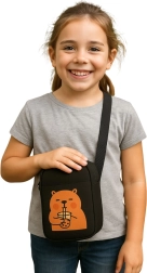 Ova stilska crossbody torbica spaja funkcionalnost i razigran dizajn. Izdržljiva tkanina štiti sadržaj, dok podesiv remen omogućuje prilagodbu dužine tjelesnoj građi i načinu nošenja. Prednja grafika s kapibarom daje torbici jedinstven izgled koji privlači na prvi pogled.