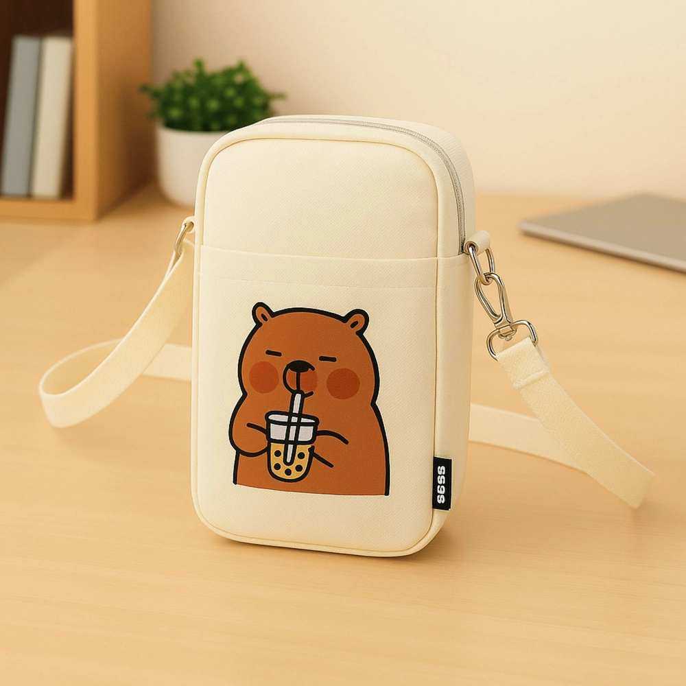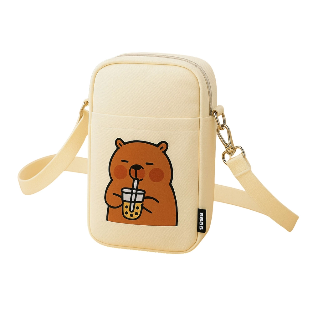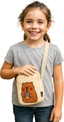 Zahvaljujući podesivom remenu lako ćete prilagoditi duljinu točno svojoj građi. Glavni džep s patentnim zatvaračem sigurno čuva potrepštine, dok prednji otvoreni džep omogućuje brz pristup sitnicama. Prednji print preslatke kapibare s bubble tea napitkom daje torbici originalan izgled koji će se svidjeti i djeci i odraslima.