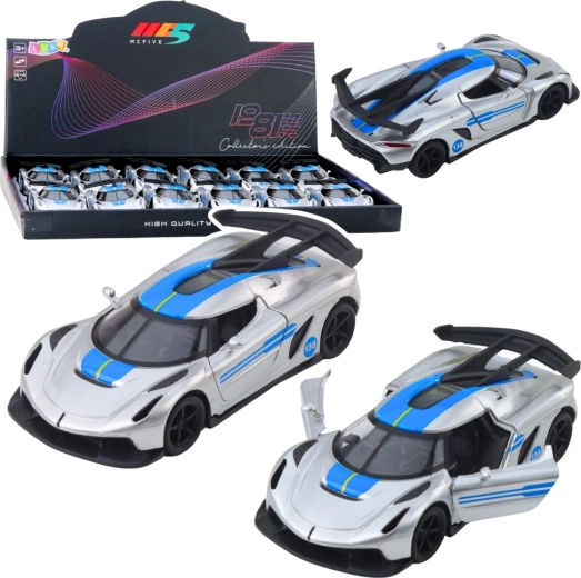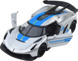 Stilski metalni sportski autić u mjerilu 1:32 oduševit će male vozače i kolekcionare. Ima metalnu karoseriju, otvarajuća vrata i povratni pull-back pogon za dinamičnu vožnju. Atraktivan srebrni dizajn s plavim elementima i detaljna izrada osiguravaju realističan izgled i puno zabave kod kuće i na putu.