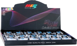 Otkrijte kompaktni trkaći autić koji se ističe izdržljivom metalnom karoserijom i modernim sportskim izgledom. Dovoljno ga je lagano povući unatrag i zahvaljujući pull-back pogonu juri naprijed. Otvarajuća vrata dodaju autentičnost i pozivaju na razgled detaljne unutrašnjosti.