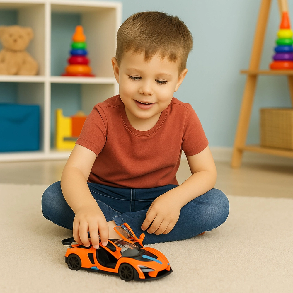 Stilizan model sportskog automobila u mjerilu 1:32 nudi metalnu karoseriju, otvarajuća vrata i pull-back pogon za dinamičnu vožnju. Zahvaljujući detaljnoj izradi, sportskom izgledu i izdržljivoj konstrukciji idealan je za igru i kolekcionare.