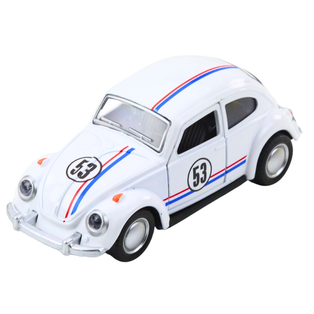 Stilizan metalni model nadahnut legendarnom „Bubom“ u mjerilu 1:32 oduševit će djecu i kolekcionare. Nudi metalnu karoseriju, uzbudljiv pull-back pogon za brzu vožnju, otvarajuća vrata i detaljnu izradu u elegantnoj bijeloj boji.