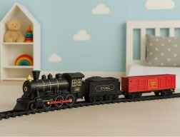 Otkrijte čaroliju klasičnih parnih vlakova u modernom izdanju. Robusna lokomotiva na AA baterije s osvjetljenjem vuče teretni i putnički vagon te se glatko kreće po plastičnim tračnicama. Zahvaljujući različitim konfiguracijama tračnica djeca mogu složiti ovalnu ili kružnu trasu i svaki put doživjeti drugačiju vožnju.