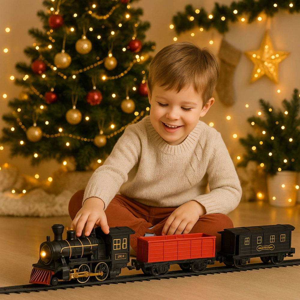 Lokomotiva s funkcionalnim svjetlom i zlatnim detaljima stvara autentičnu atmosferu i mami na igru i pri prigušenom svjetlu. Glatka vožnja po tračnicama potiče dječju maštu.