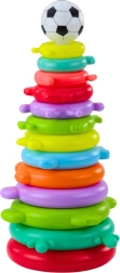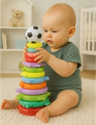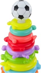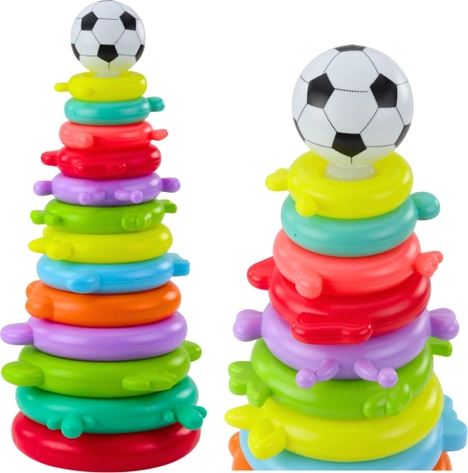 Šarena edukativna piramida s 13 prstenova i laganim loptićem na vrhu razvija finu motoriku, logiku te učenje boja i veličina. Djeca uživaju u slaganju od najvećeg do najmanjeg, stvaranju vlastitih kombinacija i kreativnom ukrašavanju naljepnicama. Lagana, sigurna plastika i žive boje čine je idealnom igračkom za svakodnevnu igru.