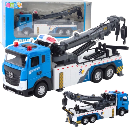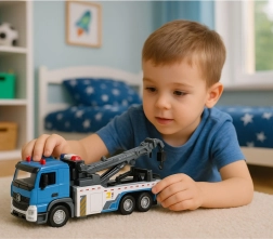 Ovaj detaljno izrađeni kamion za vuču donosi djeci autentičan doživljaj svijeta cestovnih službi. Robusna konstrukcija, žive boje i metalna kabina osiguravaju dug vijek trajanja pri svakodnevnoj igri. Otvarajuća vrata, svjetla i zvukovi pojačavaju dojam stvarne intervencije na cesti.