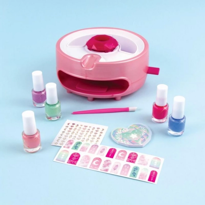 Set nudi sve što je potrebno za zabavno ukrašavanje noktiju kod kuće. Jednostavno upravljanje, razigrani dodaci i siguran sastav potiču kreativnost i finu motoriku djece.