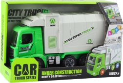 Ovaj zeleno-bijeli kamion za smeće razveselit će sve male ljubitelje komunalnih vozila. Zahvaljujući realističnom izgledu i funkcionalnim detaljima, djeca se lako mogu zaigrati na čišćenje grada, razvrstavanje i odvoz otpada. Automatski mehanizam vožnje mijenja smjer nakon udarca u prepreku, pa zabava teče bez prekida.
